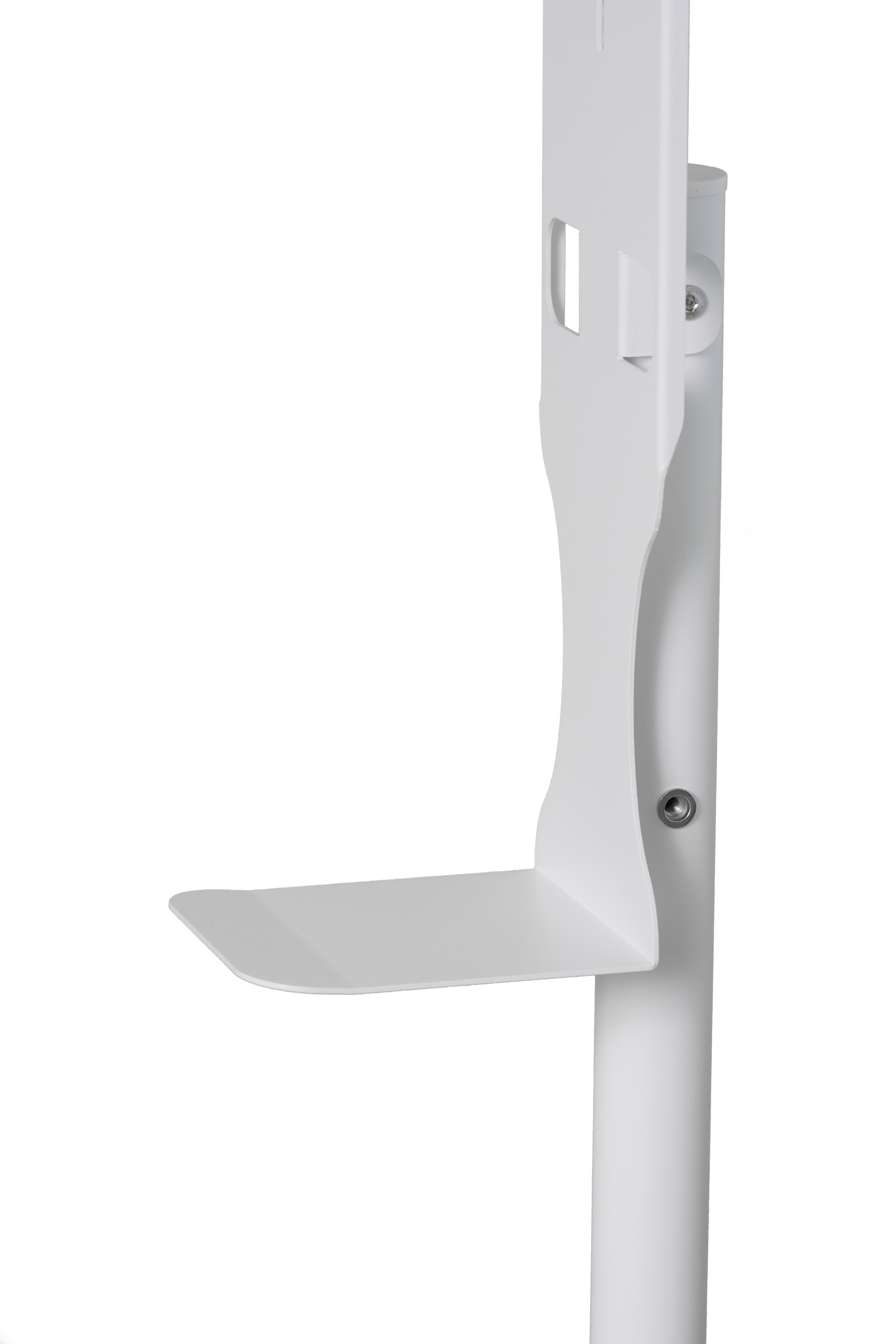 È un supporto da pavimento a colonna con piantana elegante e molto stabile. La base è semi tonda con taglio lineare posteriore che consente l'avvicinamento al muro, minimizzando gli ingombri. Colore standard Bianco Marmoreo, su ordinazione disponibile in ogni tipo di colorazione RAL.